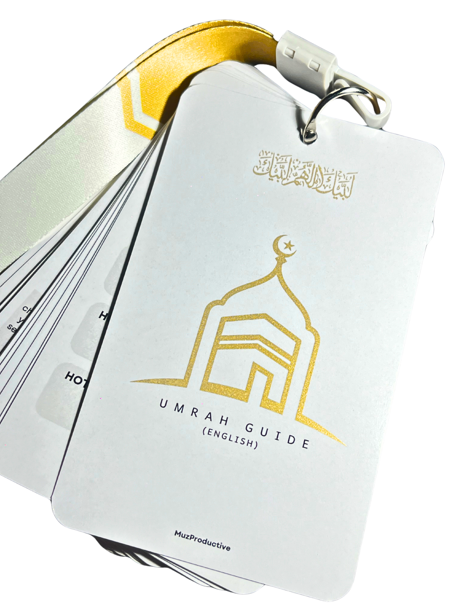 Roman Urdu Umrah Dua Cards with a Lanyard